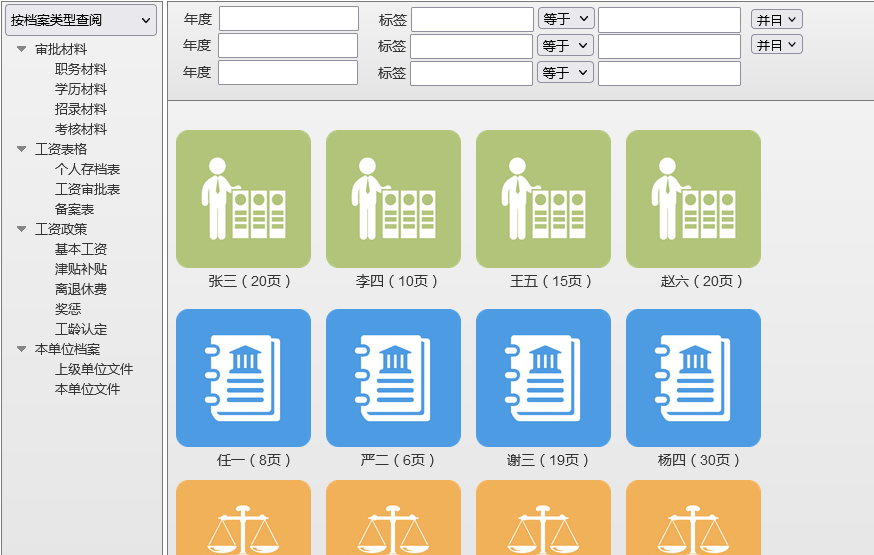 對各單位檔案進行電子化管理,數(shù)據(jù)來源包含通過“渝薪芯”采集的各類審批要件、工資審批表格以及本單位原有紙質(zhì)檔案電子化數(shù)據(jù)。