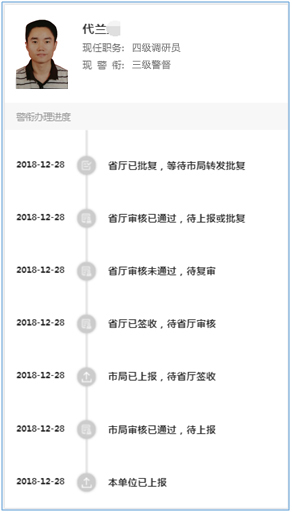 查詢本人基本信息、家庭成員、個人檔案專項審核、工資查詢、警銜條例查詢、警銜晉升樹、警銜計算器。