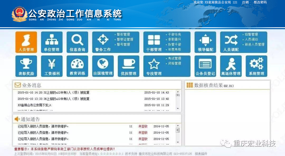 按照公安部的統(tǒng)一部署,并充分調(diào)研、匯集了全國各省的需求,在一期系統(tǒng)建設(shè)的基礎(chǔ)上,我公司全新開發(fā)了公安政治工作信息平臺,現(xiàn)已推廣應(yīng)用于河北、黑龍江、遼寧、山東、安徽、浙江、陜西、廣西、廣東、重慶、四川、湖南、新疆等13個省(自治區(qū)、直轄市)公安機(jī)關(guān)及新疆建設(shè)兵團(tuán)。