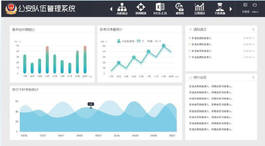 本系統(tǒng)以信息化手段,對隊伍建設(shè)的考核考勤、加班、休假、證照、培訓(xùn)、流動等進(jìn)行動態(tài)管理,通過隊伍建設(shè)動態(tài)管理,實現(xiàn)政治建警、從嚴(yán)治警、從優(yōu)待警、文化育警、科學(xué)用警。